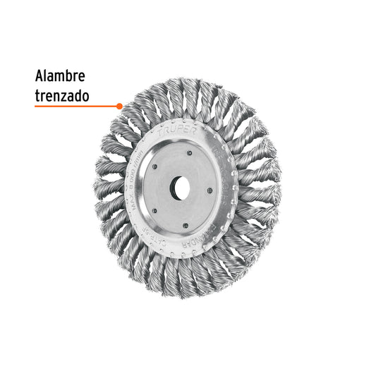 TruperCarda tipo cónico 5' alambre trenzado, eje 5/8'-11, Truper Caja con 4, 14191