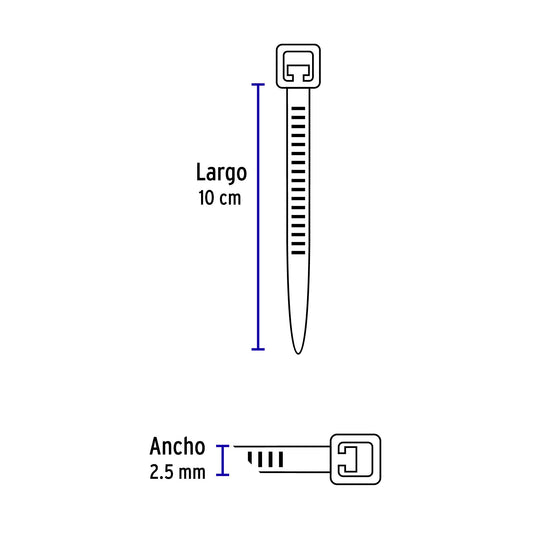 Proveedor:VolteckBolsa con 100 cinchos plásticos 18 lb, 100 x 2.5 mm, azules Caja con 10, 41011Fabricados en nylon Seguro automático Útiles para sujetar, amarrar y ordenar cables eléctricos u otro tipo de objetos