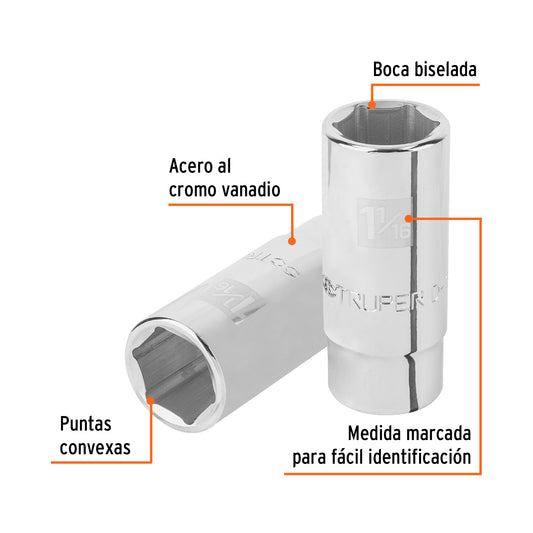 TruperDado largo de 1-1/16', 12 puntas, cuadro 1/2', Truper Caja con 6, 13371