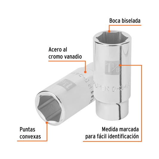 TruperDado largo de 1-1/8', 6 puntas, cuadro 1/2', Truper Caja con 6, 100998