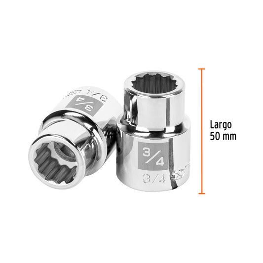 TruperDado de 3/4', 12 puntas, cuadro 3/4', Truper Caja con 3, 13850