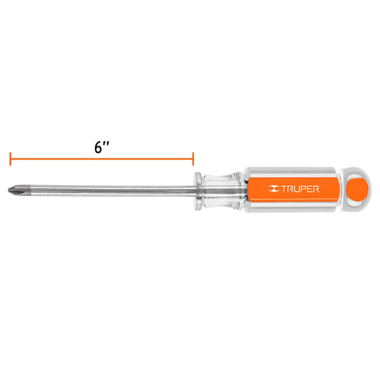 TruperDesarmador de cruz 3/8' x 8' mango de acetato, Truper Caja con 6, 14086
