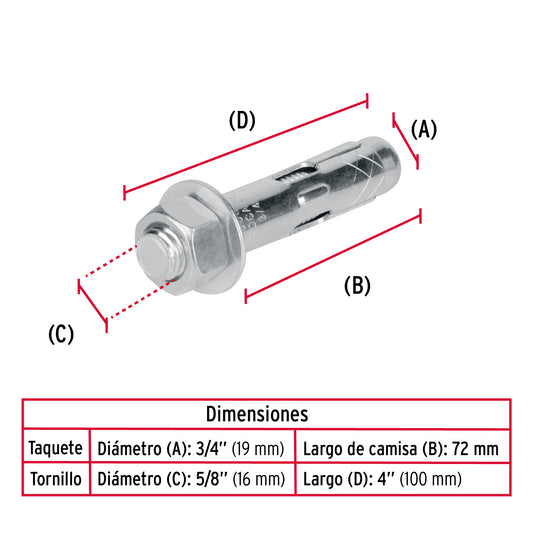 Proveedor:Fierotaquetes expansivos de 5/8' con tornillo, Fiero Caja con 25, 47362Fabricados en acero con acabado galvanizado Taquete montado Para fijar en concreto