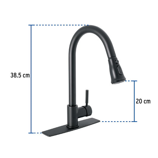 FosetMonomando para fregadero,cuello extraible,negro mate,Tubig, 46770