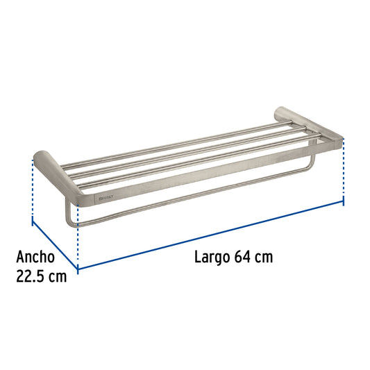 Proveedor:FosetRepisa de latón portatoalla en acabado satín, Foset Riviera, 45225Repisa y soportes de latón para máxima duración Con sistema de montaje para semiempotrar Incluye llave allen, taquetes y tornillería...