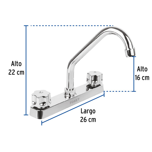 FosetMezcladora plástica 8' p/fregadero, cuello alto, hex Basic Caja con 2, 48193