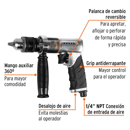 Proveedor:TruperTaladro neumático reversible 1/2', Truper, 19369