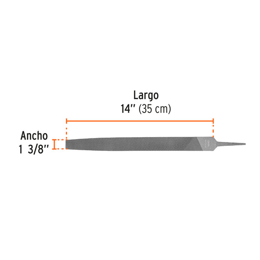 Proveedor:TruperLima plana muza 14', Truper Caja con 6, 15162Picado doble para desbaste rápido Para acabados finos Para superficies planas y esquinadas Ahusadas en anchura y espesor