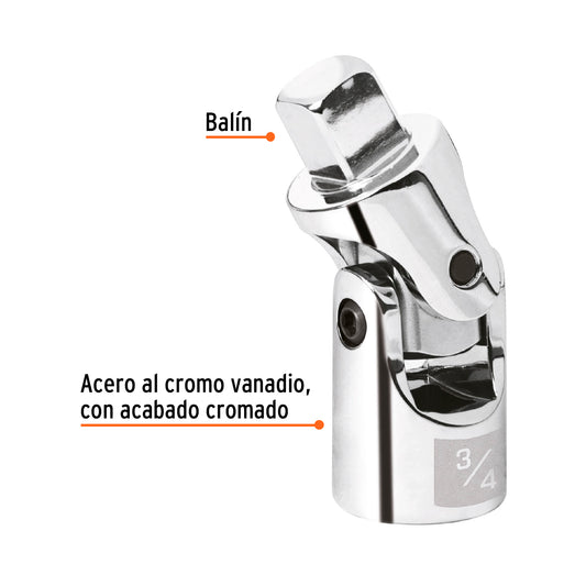 Proveedor:TruperNudo universal para dados con cuadro de 3/4', Truper, 13910Fabricado en acero al cromo vanadio con acabado pulido espejo resistente a la oxidación y de fácil limpieza Especial para...