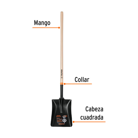 Proveedor:TruperPala T-2000 cuadrada, tipo español, mango largo 41', Truper Caja con 3, 11391Cabeza #4, 35% más grande que las palas de cabeza #2 Mango largo de madera con acabado enlacado Collar reforzado...