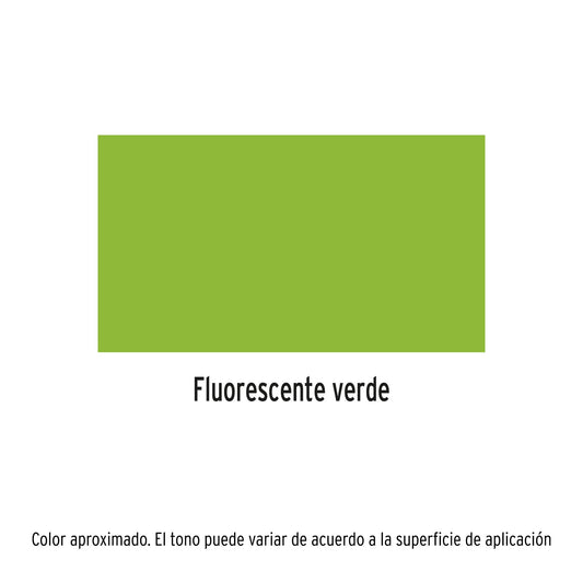 Proveedor:TruperPintura en aerosol, verde neón, bote esbelto, 400 ml Caja con 4, 19073Fácil aplicación y secado rápido Máxima cobertura, mejor adherencia, mayor rendimiento Libre de plomo Anticorrosión Ideal para interiores y exteriores,...