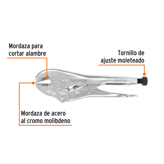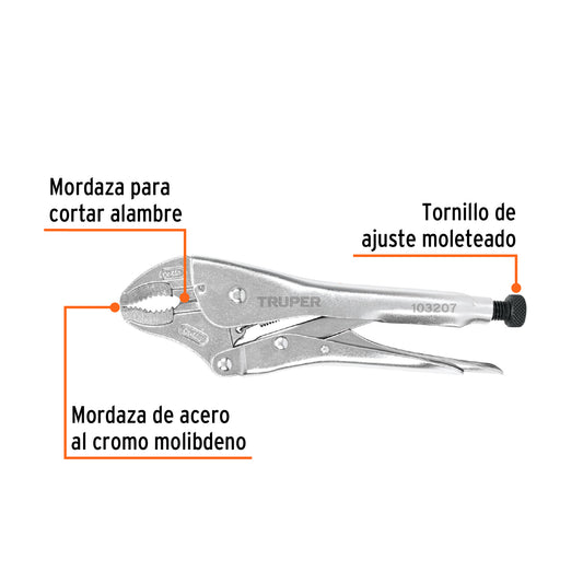 Proveedor:TruperPinza de presión 10' mordaza curva, tipo japonés, Truper Caja con 3, 103207Mordazas curvas de acero al cromo molibdeno para mayor durabilidad y agarre Máxima sujeción y torque en superficies como tuberías...