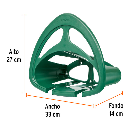 Proveedor:TruperPortamanguera de plástico verde, Truper Caja con 6, 10638Fabricado en polipropileno alto impacto Fácil instalación en pared Para mangueras con diámetro de 1/2", rollos de hasta 25 m