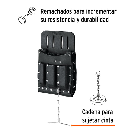 Proveedor:TruperPorta herramientas de clavos con 2 compartimentos, Truper Caja con 4, 11516Piel de lomo de búfalo para máxima resistencia Remachado para mayor tiempo de vida Para tornillería pequeña