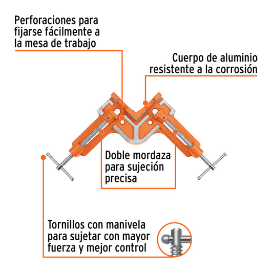 Proveedor:TruperPrensa esquinera de 3' profesional, cuerpo aluminio, Truper Caja con 6, 17690Cuerpo robusto de aluminio resistente a la corrosión, 80% más resistente al torque y manivela más larga para aplicar mayor...