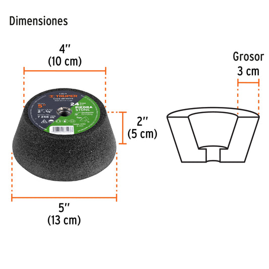 TruperCopa desbaste de piedra 5' grano 24, eje 5/8-11, Truper, 13786