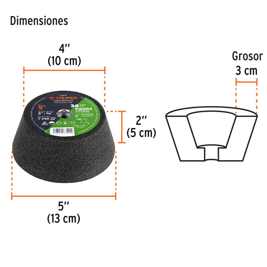 TruperCopa desbaste de piedra 5' grano 36, eje 5/8-11, Truper, 13787