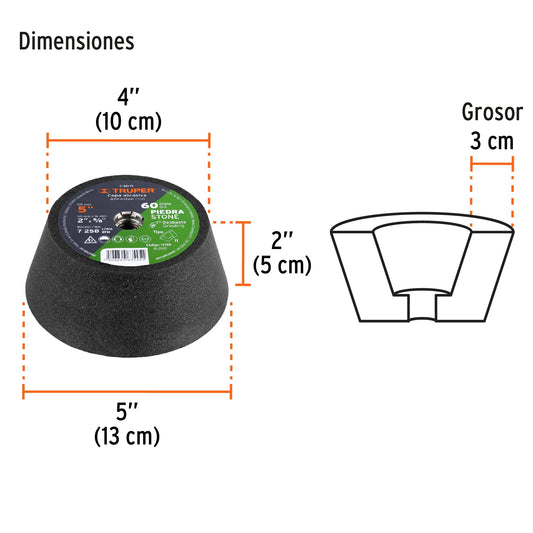 TruperCopa desbaste de piedra 5' grano 60, eje 5/8-11, Truper, 13788