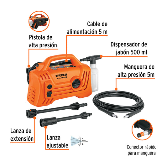 TruperHidrolavadora eléctrica 1800 PSI, Truper, 101594