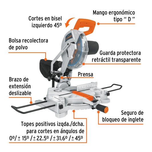 Proveedor:TruperSierra de inglete 10', 1900W telescópica compuesta, TRUPER, 16869