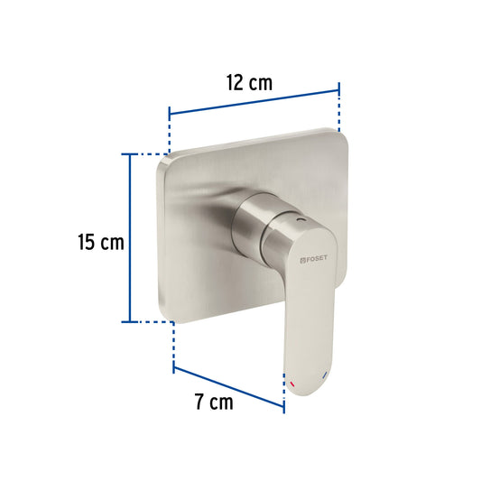 Proveedor:FosetMonomando satín para regadera sin desviador, Foset, 45200Fabricado en latón para máxima duración Maneral metálico tipo palanca Cartucho cerámico de suave y fácil apertura (CARMO-21) marca Foset®