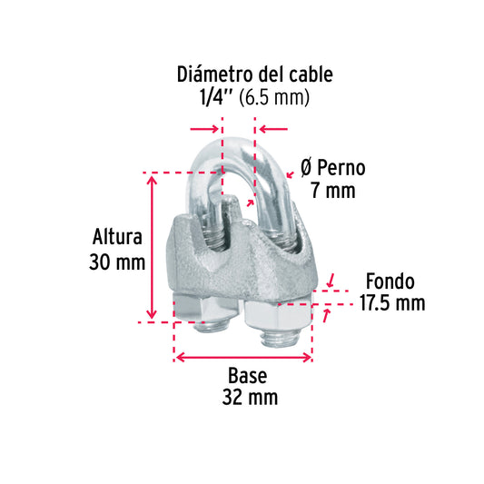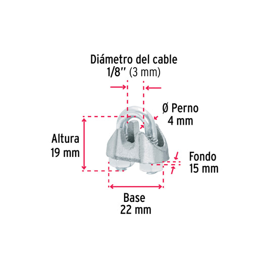 Proveedor:FieroBolsa c/25 nudos (perros) de hierro p/cable de 5/16', Fiero, 40707Fabricado en hierro maleable con acabado galvanizado resistente a la corrosión Para arreglos de cables donde no se puedan usar...