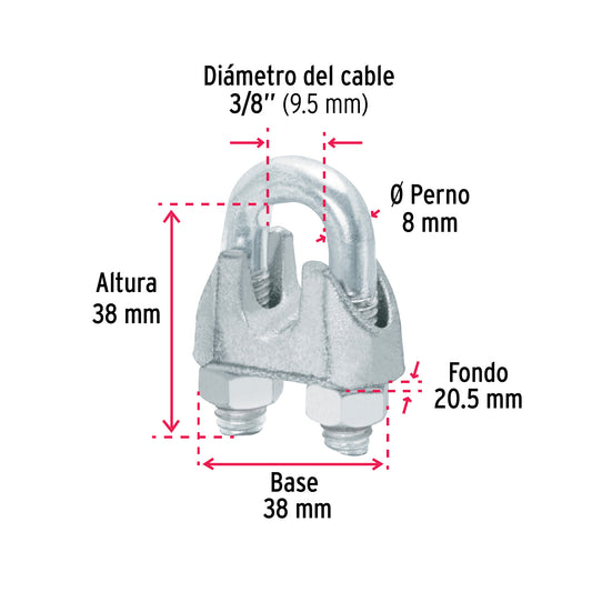 Proveedor:FieroBolsa c/20 nudos (perros) de hierro p/cable de 3/8', Fiero, 40708Fabricado en hierro maleable con acabado galvanizado resistente a la corrosión Para arreglos de cables donde no se puedan usar...