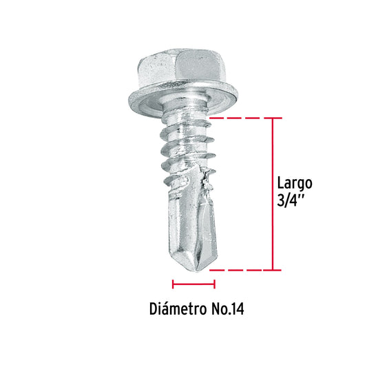 Proveedor:FieroBolsa con 100 pijas cabeza hexagonal, #14 x 3/4', FIERO Caja con 3, 40929Pija cabeza hexagonal #14 x 3/4"100pzas