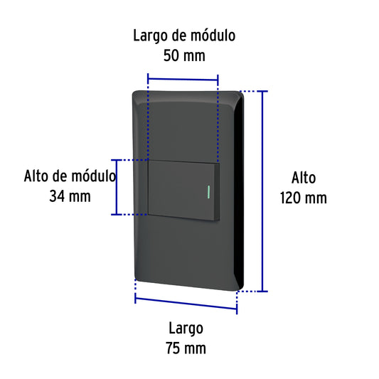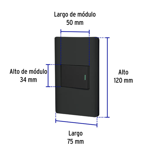 Proveedor:VolteckPlaca armada negra 1 interruptor 1.5 módulos, Lisboa Caja con 3, 47891Fabricada en policarbonato 1 Interruptor sencillo Indicador nocturno fluorescente