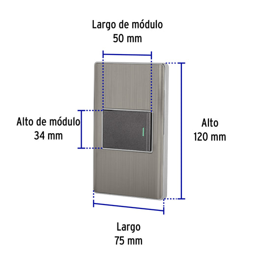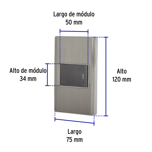 Proveedor:VolteckPlaca armada acero inox 1 interruptor 1.5 módulos, Lisboa Caja con 3, 47838Fabricada en policarbonato 1 Interruptor sencillo Indicador nocturno fluorescente