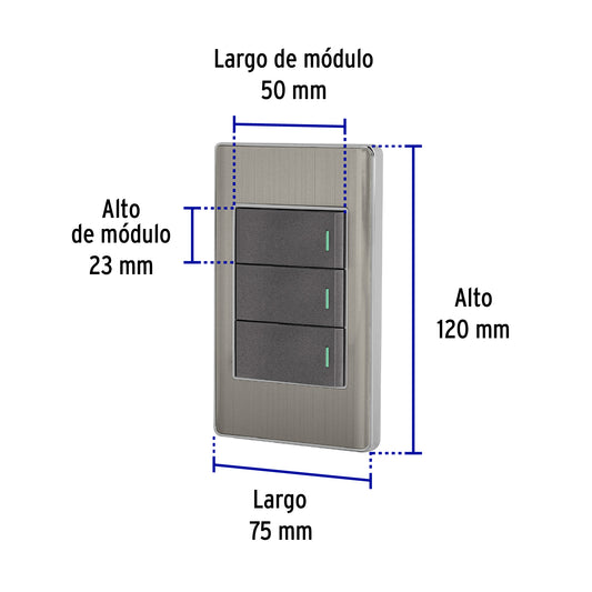 Proveedor:VolteckPlaca armada 3 interruptores 1 módulo, Toledo, Basic Caja con 10, 29054Placa armada 3 interruptores 1 módulo, Toledo, Basic