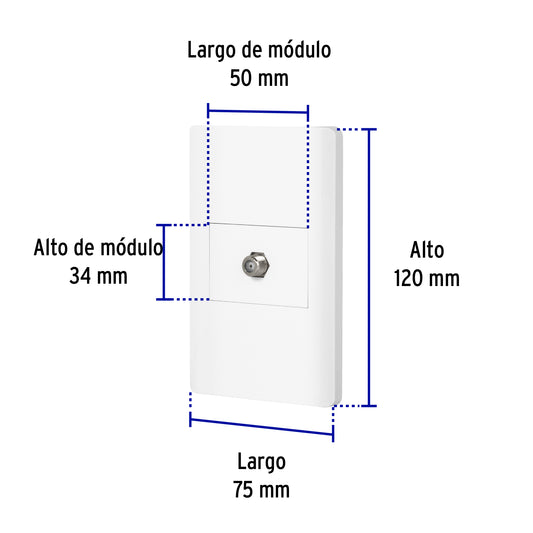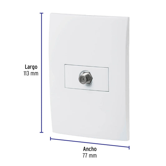 Proveedor:VolteckPlaca armada con entrada TV, línea Oslo, color blanco Caja con 3, 46499Placa de ABS Conector macho tipo “F” roscado