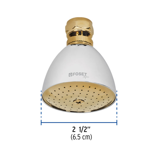 Proveedor:FosetRegadera cónica 2-1/2' cromo-oro sin brazo, Foset Aqua Caja con 2, 49148Ahorradora en baja presión Cabeza metálica Para mayor flujo de agua se puede retirar el reductor