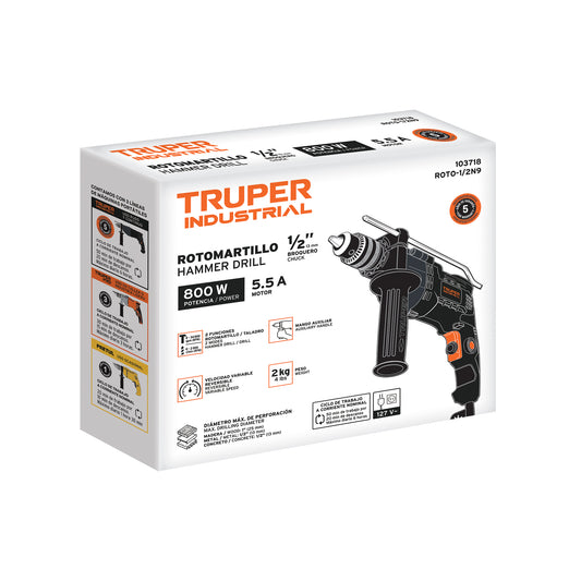 Proveedor:TruperRotomartillo 1/2', 800W, TRUPER INDUSTRIAL, 103718Rotomartillo 1/2", 800W, TRUPER INDUSTRIAL