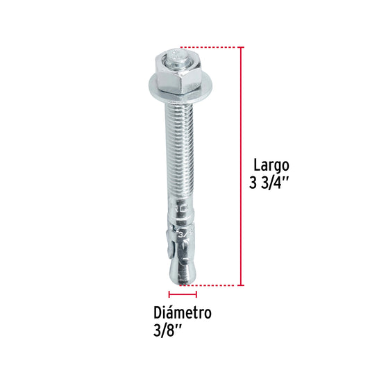 Proveedor:FieroTaquetes arpón de 3/8' x 3-3/4', Fiero Caja con 50, 46643Fabricados en acero con recubrimiento galvanizado Sistema ideal para montaje en vigas y columnas Incluye tuerca y arandela
