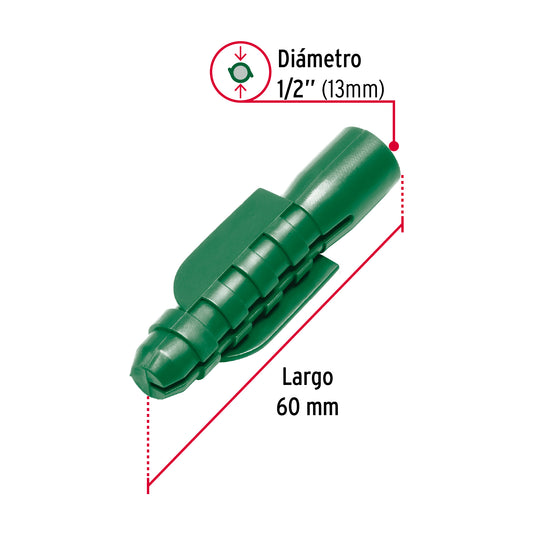 Proveedor:FieroKit 20 taquetes plásticos 1/2', p/panel de yeso con pijas #8 Caja con 10, 40743Autotaladrante, no requiere taladrar previamente Para panel de yeso de 3/8" a 1" de espesor