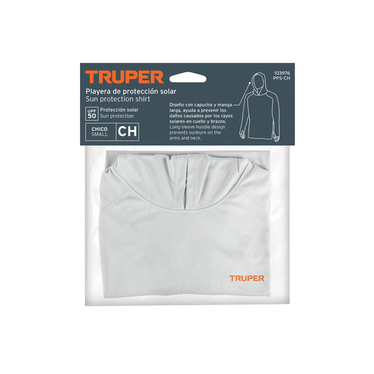 Proveedor:TruperPlayera protección solar,m. larga, c/gorro,hombre,CH, TRUPER, 103976Playera solar,hombre,CH,TRUPER