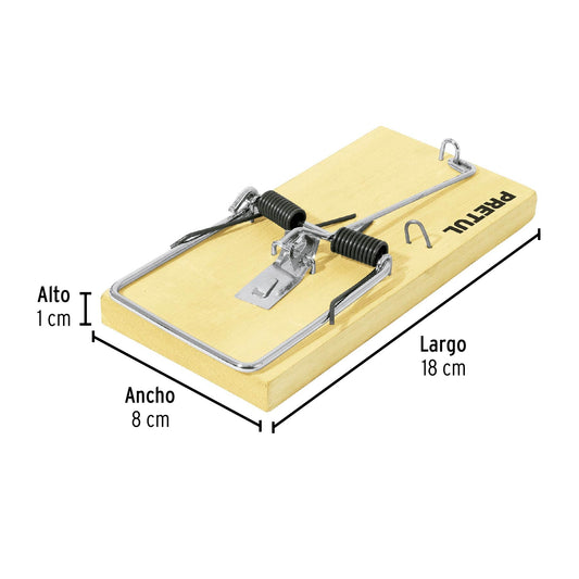 Proveedor:PretulBolsa con 2 trampas de 4' de madera para ratón, Pretul Caja con 10, 23709Resorte tratado térmicamente para mayor presión Pedal de activación sensible al contacto Base fabricada en madera y componentes de acero...