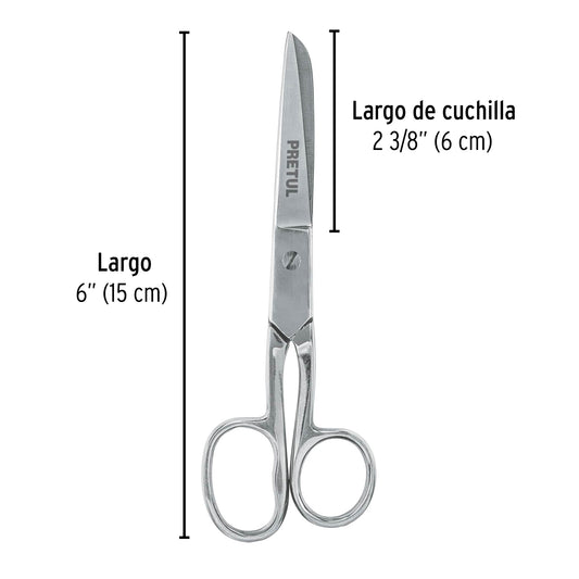 Proveedor:PretulTijera 6' ojo grande acero inoxidable para costura, PRETUL Caja con 6, 23160Forjada en acero inoxidable Ligera Cortes finos Para bordado, costura y manualidades