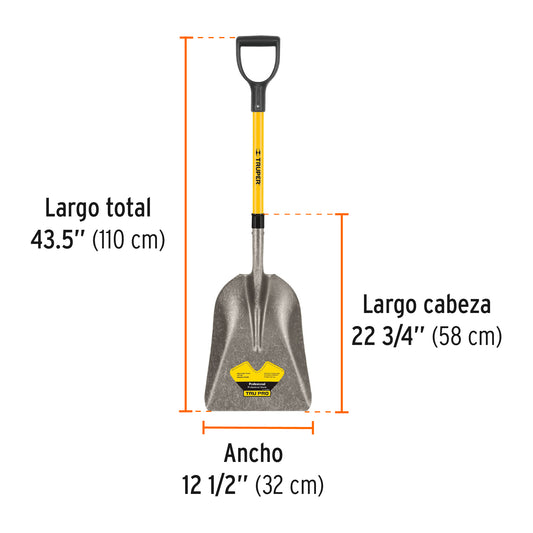 Proveedor:TruperPala carbonera Tru Pro, puño 'Y', mango de fibra de vidrio Caja con 3, 17153Cabeza de acero al carbono Mango fabricado en fibra de vidrio con puño "Y" plástico Ensamble con casquillo crimpado