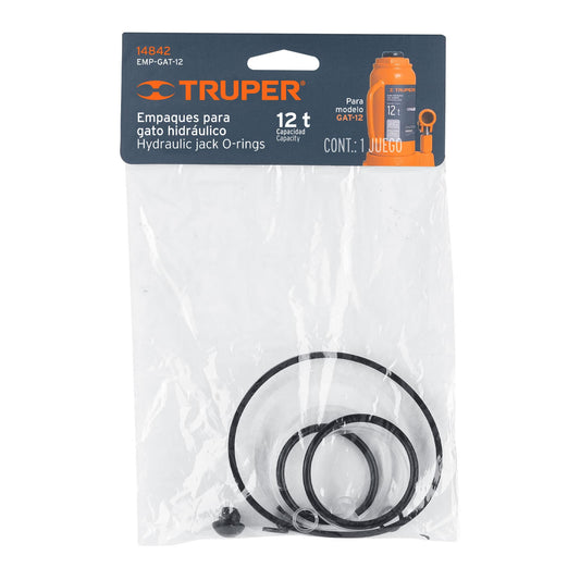 Proveedor:TruperEmpaques para gato hidráulico de botella de 4 Ton, Truper Caja con 12, 14813Contiene juego de empaques para bomba, base, tuerca, vástago y tapón para depósito. Fabricados de hule, nylon y polipropileno Para...
