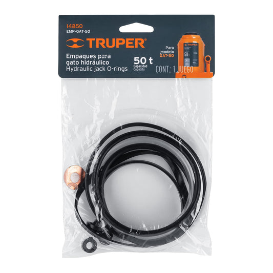 Proveedor:TruperEmpaques para gato hidráulico de botella de 50 Ton, Truper Caja con 12, 14850Contiene juego de empaques para bomba, base, tuerca, vástago y tapón para depósito. Fabricados de hule, nylon y polipropileno Para...