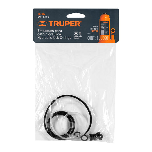 Proveedor:TruperEmpaques para gato hidráulico de botella de 8 Ton, Truper Caja con 12, 14817Contiene juego de empaques para bomba, base, tuerca, vástago y tapón para depósito. Fabricados de hule, nylon y polipropileno Para...