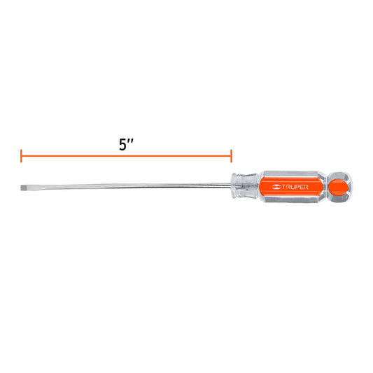 Proveedor:TruperDesarmador plano 3/16' x 4' mango de acetato, Truper Caja con 6, 13990Barra redonda de acero al cromo vanadio, 2X más resistente al desgaste que las de acero al carbono Mango de acetato, 3X mayor resistencia...- Precio habitual