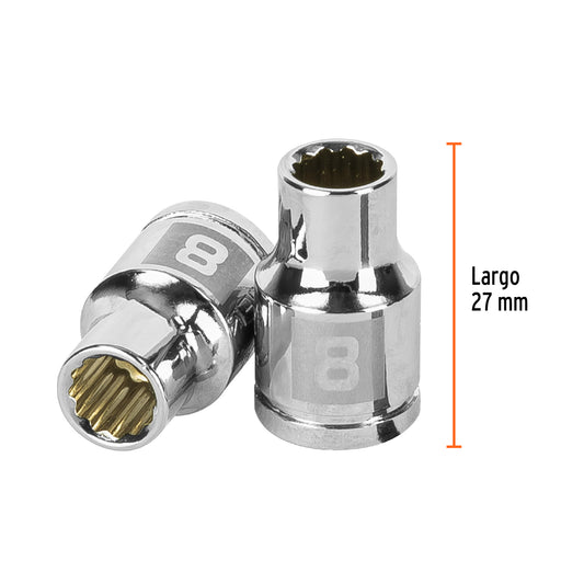Proveedor:TruperDado de 8 mm, 12 puntas, cuadro 3/8', Truper Caja con 6, 13628Fabricado en acero al cromo vanadio con acabado pulido espejo resistente a la oxidación y de fácil limpieza Sistema de sujeción...- Precio habitual