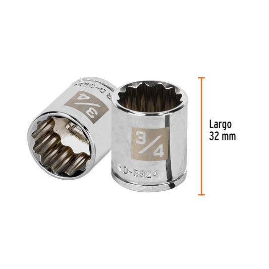 Proveedor:TruperDado de 3/4', 12 puntas, cuadro 3/8', Truper Caja con 6, 13588Fabricado en acero al cromo vanadio con acabado pulido espejo resistente a la oxidación y de fácil limpieza Sistema de sujeción...- Precio habitual