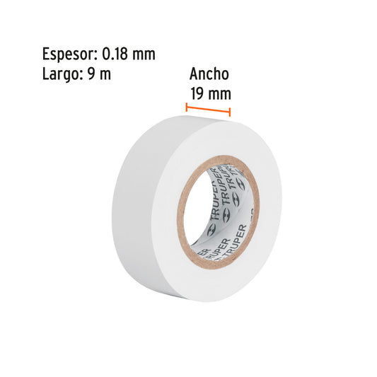 Proveedor:TruperCinta de aislar de 9 m x 19 mm, blanca, Truper Caja con 8, 13515Cinta de PVC Base de adhesivo hule - resina para mayor adherencia en temperaturas frías y de calor (0 °C a 80 °C)...- Precio habitual