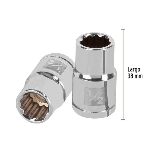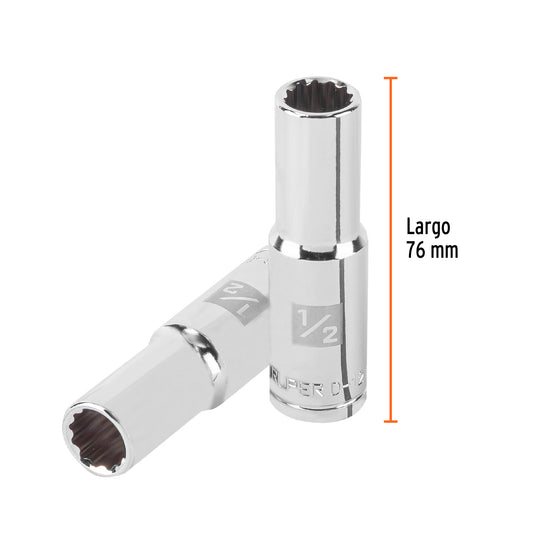 Proveedor:TruperDado largo de 1/2', 12 puntas, cuadro 1/2', Truper Caja con 6, 13360Fabricado en acero al cromo vanadio con acabado pulido espejo resistente a la oxidación y de fácil limpieza Sistema de sujeción...