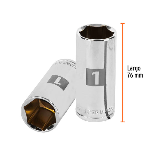 Proveedor:TruperDado largo de 1/2', 6 puntas, cuadro 1/2', Truper Caja con 6, 13325Fabricado en acero al cromo vanadio con acabado pulido espejo resistente a la oxidación y de fácil limpieza Sistema de sujeción...