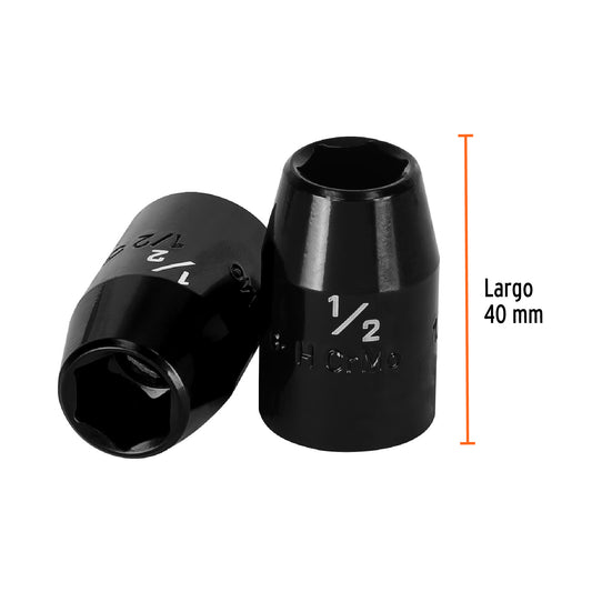 Proveedor:TruperDado de impacto de 7/16', 6 puntas, cuadro 1/2', Truper Caja con 6, 13376Fabricado en acero al cromo molibdeno con acabado fosfatado resistente a la corrosión Sistema de sujeción Truper-Drive con puntas convexas que...
